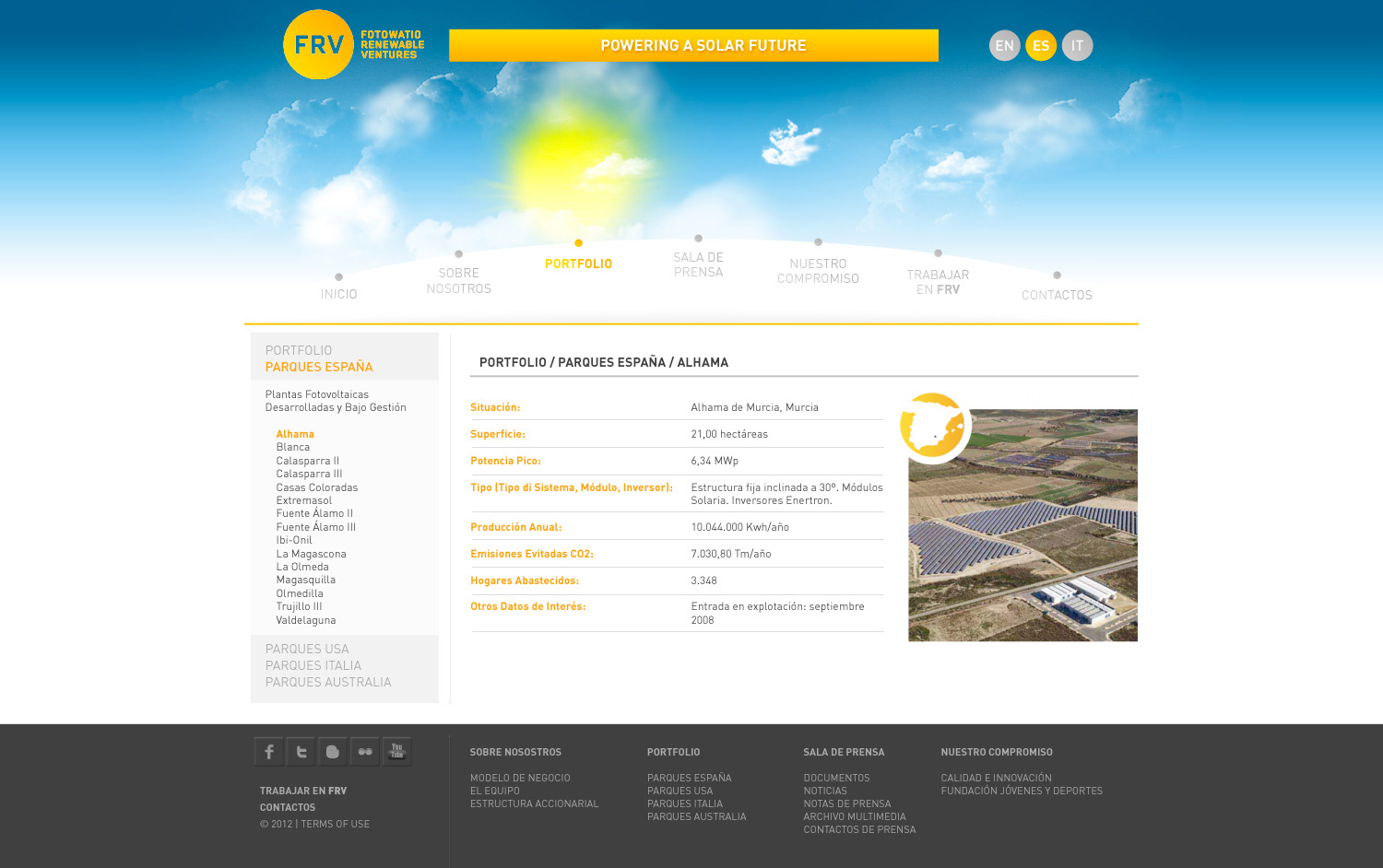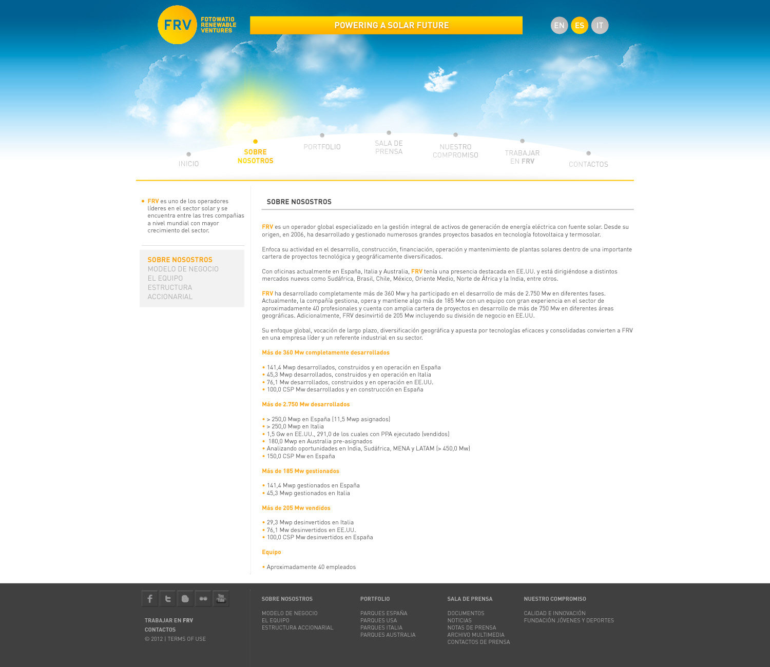 Propuesta web para FRV. Empresa que se dedica a gestionar y desarrollar activos y proyectos fotovoltaicos.