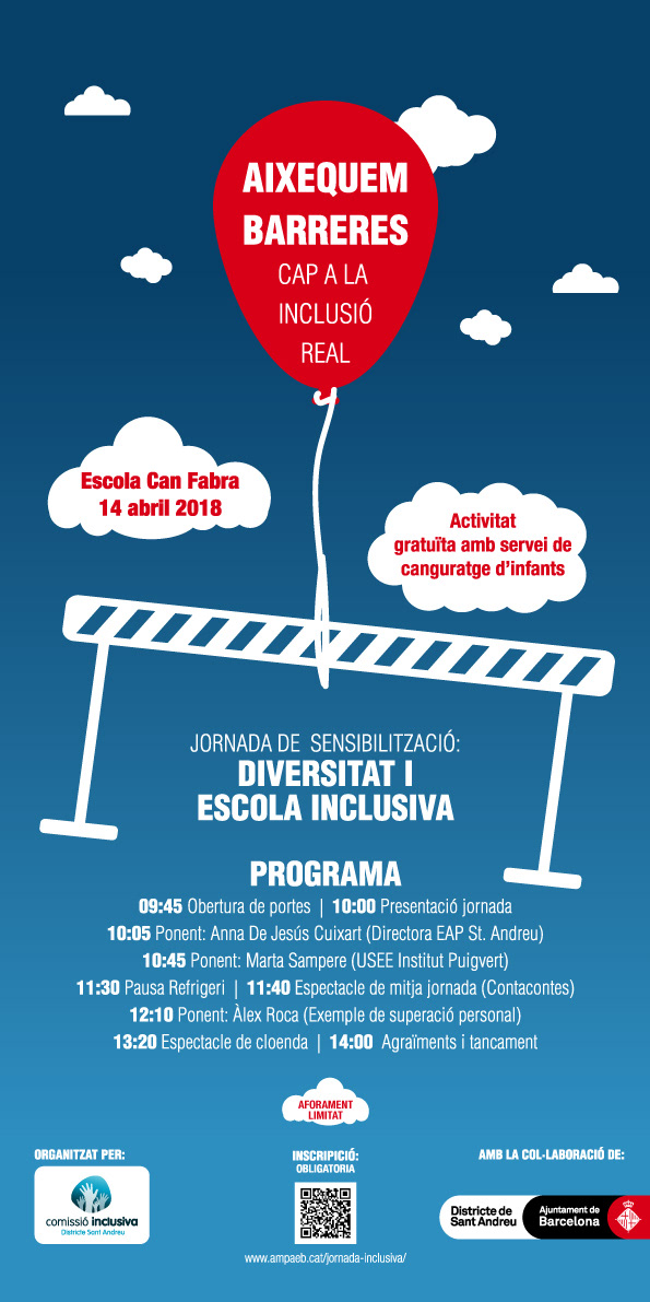Cartel para jornada de sensibilización inclusiva en el districto de Sant Andreu Barcelona.