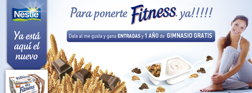 Nestle en Facebook, cabeceras y CTOs de promos APPs Yogur&Fitness y Yogur&KitKat.